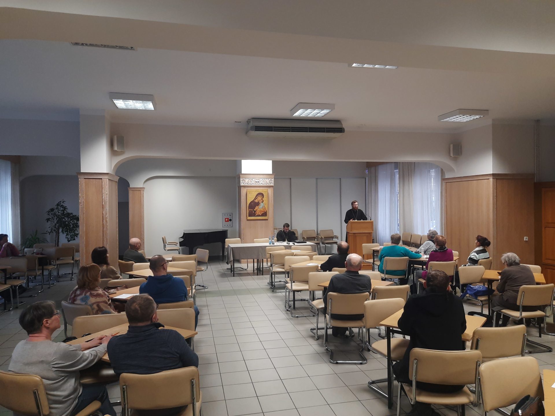 Szczegóły30 marca 2026 roku w Centrum Kultury Prawosławnej w Białymstoku odbyło się kolejne spotkanie z cyklu Wszechnicy Kultury Prawosławnej. Wykład pt.”Post jako walka z namiętnościami. Gniew i sposób jego pokonywania w naszej codzienności” wygłosił Ks. dr Ivan Nikulin z parafii prawosławnej św. Jerzego w Białymstoku.