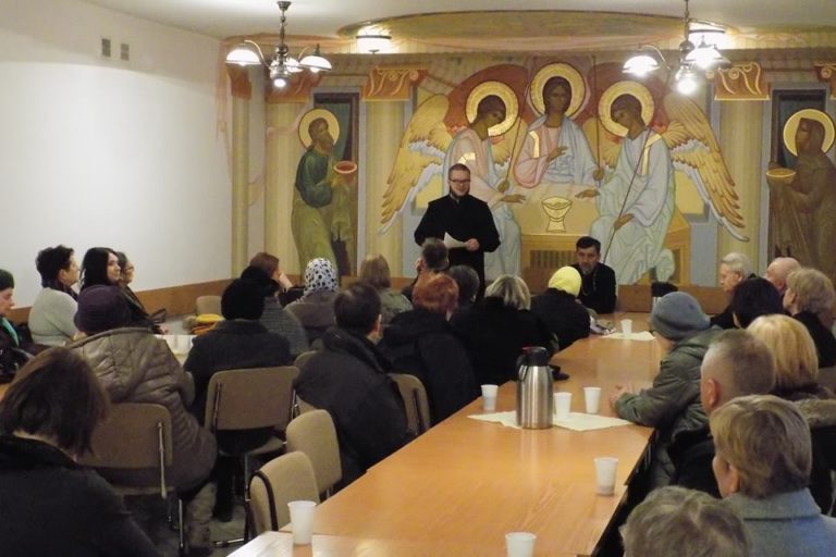 „Sens i znaczenie nabożeństw Wielkiego Tygodnia” to temat prelekcji, którą 25 kwietnia 2018 roku wygłosił diakon parafii św. Ducha w Białymstoku. Ojciec Jan bazując na księgach triodionu postnego, typikonu oraz praktyce liturgicznej przybliżył słuchaczom najważniejsze zagadnienia związane z poszczególnymi dniami Wielkiego Tygodnia.