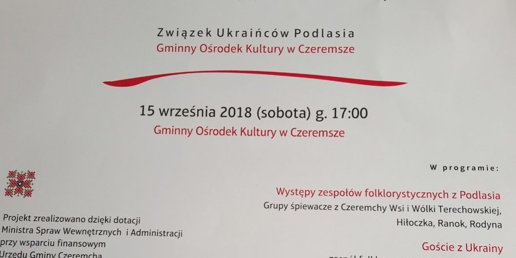 Po okresie plenerowych imprez z udziałem ukraińskich zespołów, rozpoczyna się sezon jesiennych koncertów organizowanych przez Związek Ukraińców Podlasia. Pierwszym z nich są “Dżereła” – Ukraińskie Tradycje i Transformacje, które odbędą się w najbliższą sobotę w Gminnym Ośrodku Kultury w Czeremsze. Więcej o planowanych przez ZUP wydarzeniach opowie przewodniczący organizacji, dr Andrzej Artemiuk.